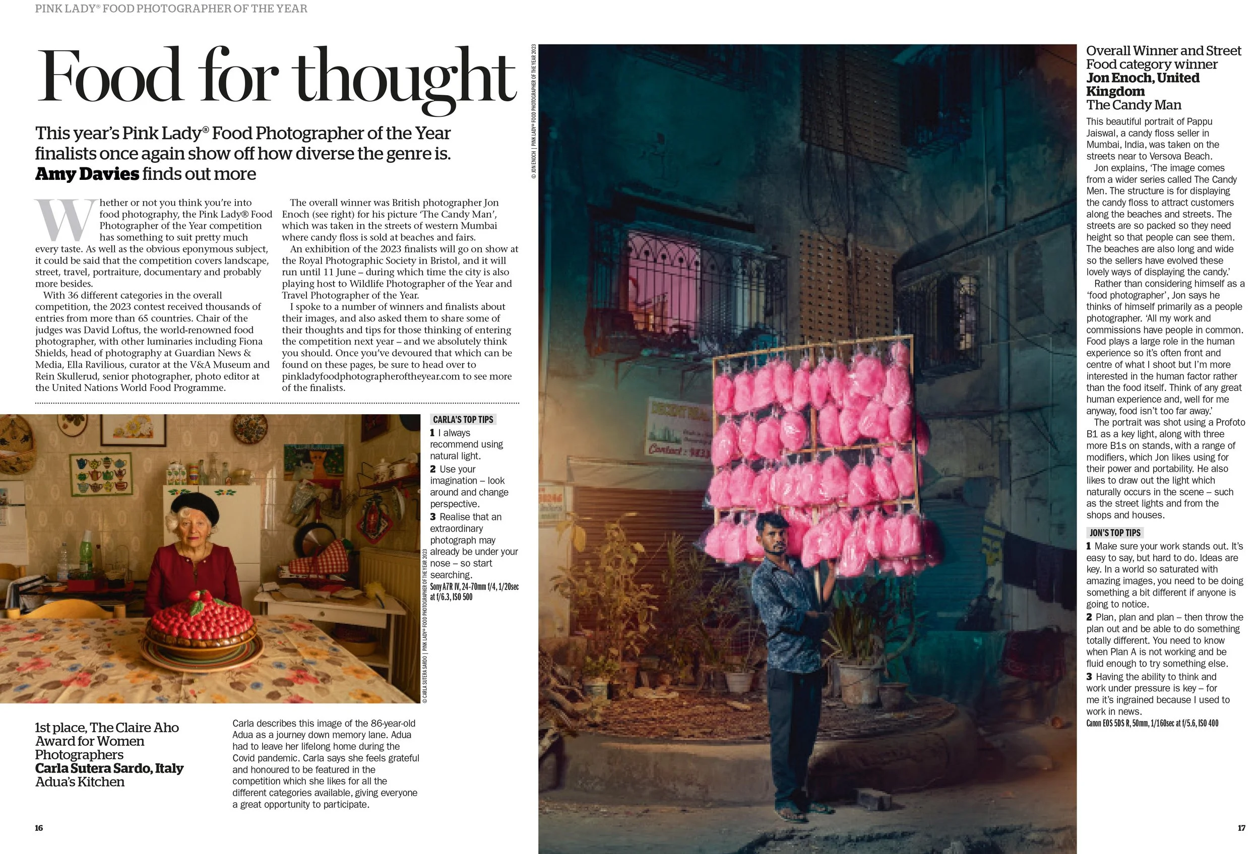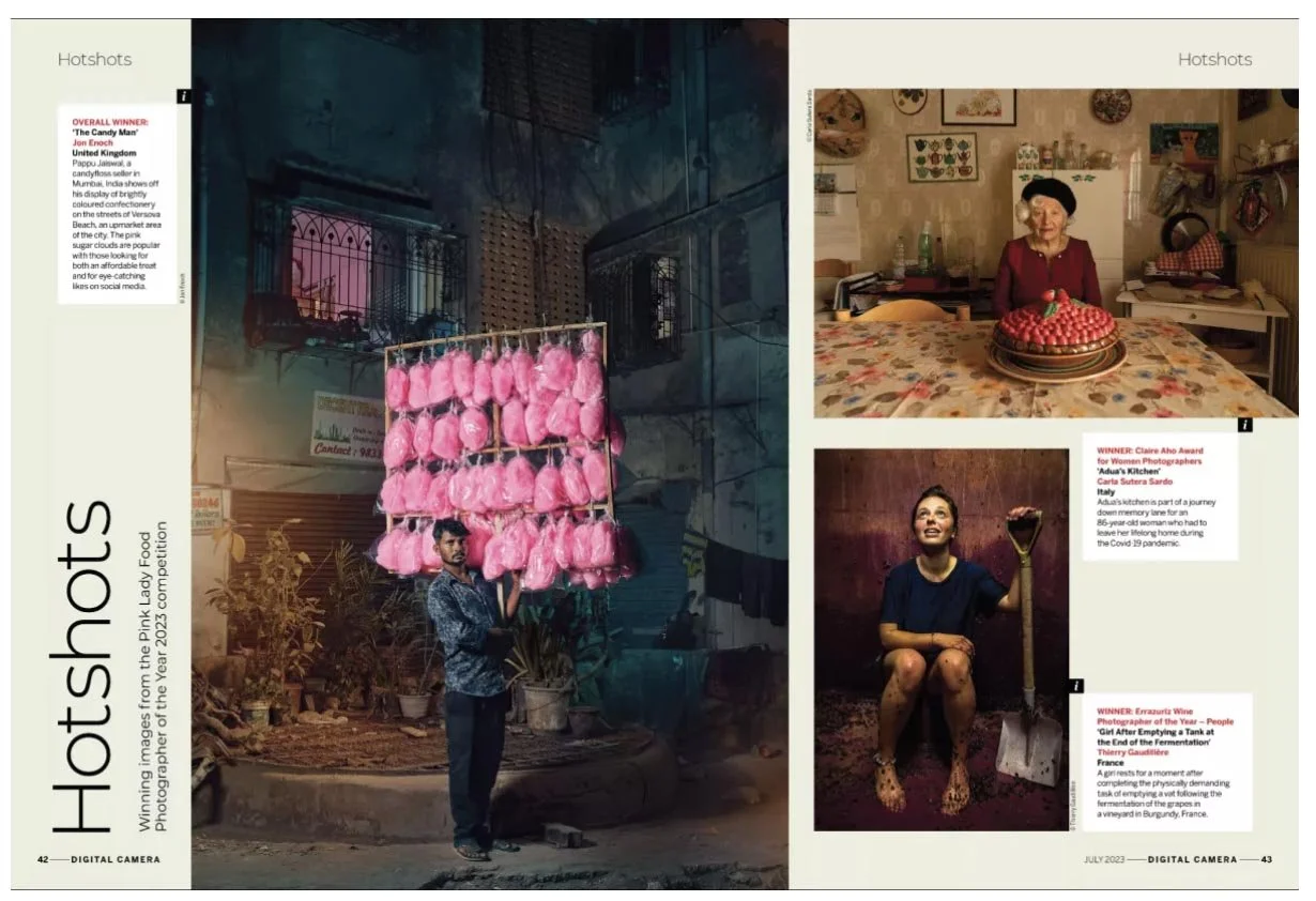 Last year I was named Food Photographer of the Year for my work on candy floss sellers in India at the Pink Lady Awards. Here are just some of the over 170 articles and press pieces featuring the work. Everything from The BBC, Der Standard, TimeOut to Bored Panda. Kudos to the food awards team. Lovely to win this award, even more pleasing when I consider myself an advertising and lifestyle photographer rather than a food photographer.