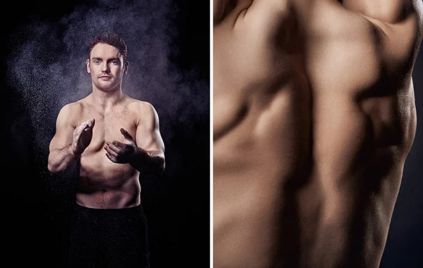 Young british athletics talent. Photographed at the National Training Academy outside of Birmingham. We spend the afternoon with the athletes capturing them in training across a range of disciplines. Using a heavy amount of flash to overcome the messy and flat gym interior. We also shot ‘body parts’ for the client to convey the peak physical condition of these elite athletes. As a sports portrait photographer I love the moody dark drop off you get when shooting in large training facilities.